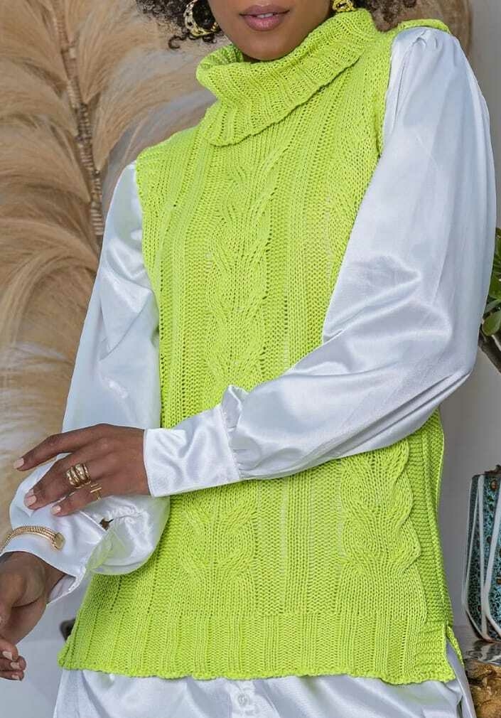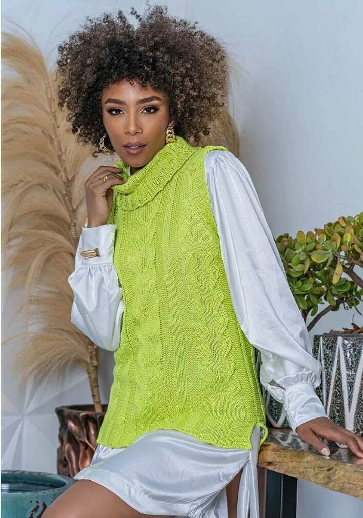 Confeccionado na linha. Possui modelagem justa e mais alongada, detalhes em tramas e uma gola mais alta, que trás elegância para a peça. Além disso, é super confortável e quentinha, ideal para usar em dias mais frios. Invista!