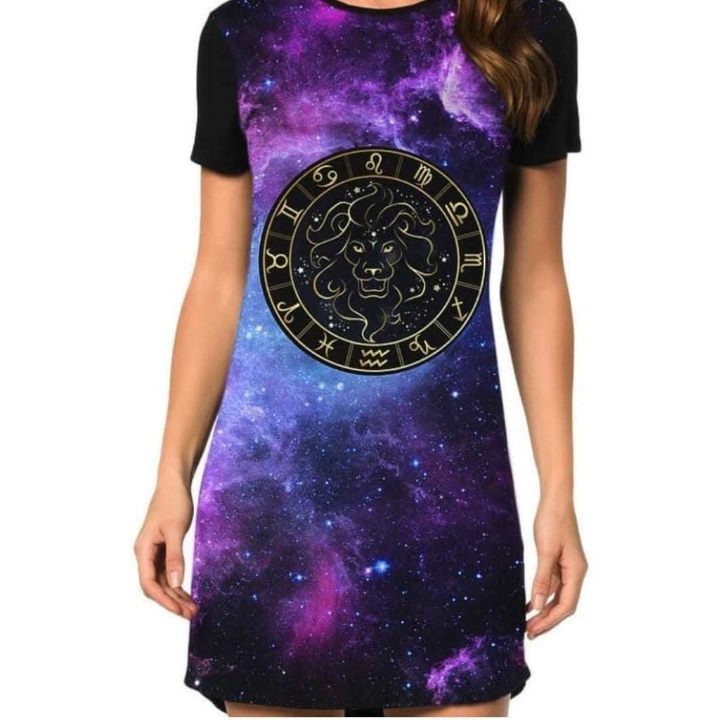Vestido em Malha com estampa na frente e com a parte de trás lisa